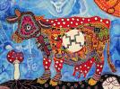 In the Vedic pantheon of gods, the bull or cow is the vehicle of Lord Siva, and a symbol of strength and endurance. Vishnu's avatar form of Krishna, took the incarnation of a cowherd who enchanted cows and other living beings with his flute playing. His association with cows highlighted the importance of protecting and respecting the earth and its creatures. In the Vedas, one can find the story of the divine cow Kamadhenu, "the wish fulfilling cow" who is the dear treasure of the seven celestial sages. She emerged from the churning of the celestial ocean, along with many other treasures including the divine nectar of immortality, amrita ". As she is greatly desired for her endless gifts and bounty she remains under the care and protection of the sages. In all ancient cultures cows have played an important role in helping man understand his duty and relationship to the natural environment.